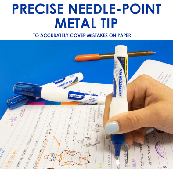 - NO MORE MISTAKES! We’ve got you covered with our assortment of correction fluids, tape and pen. No need to worry about re-doing your work due to a minor mistake.