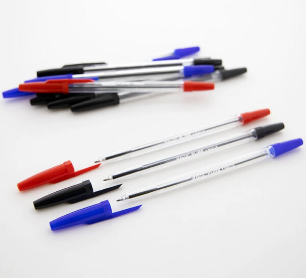 - A transparent barrel provides a glimpse of the ink level