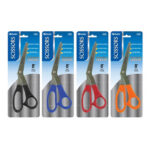 - DURABLE. High quality scissors are made of lightweight stainless steel blade. Highly resistant to corrosion. Performance well on cutting lightweight plastic, coated sheet, curling ribbon, gift wrap.